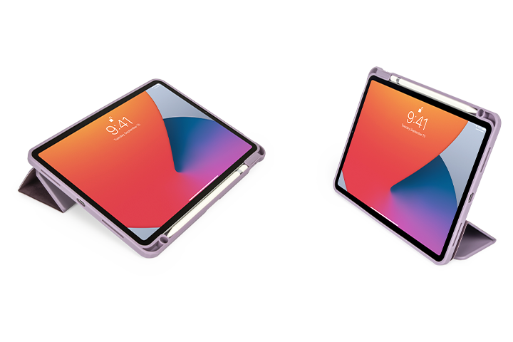 A strong and flexible cover can be attached and detached easily for the best angle. The cover can be folded into different positions to create a stand for working, reading or watching videos.