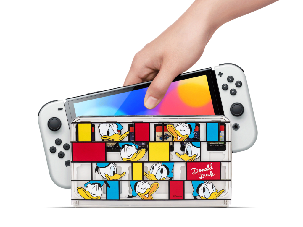 Switch OLED 遊戲卡盒可在側面同時存儲多達 12 個遊戲卡帶和 6 個 micro SD 卡。 您可以輕鬆存放自己喜歡的遊戲卡並隨時取用。